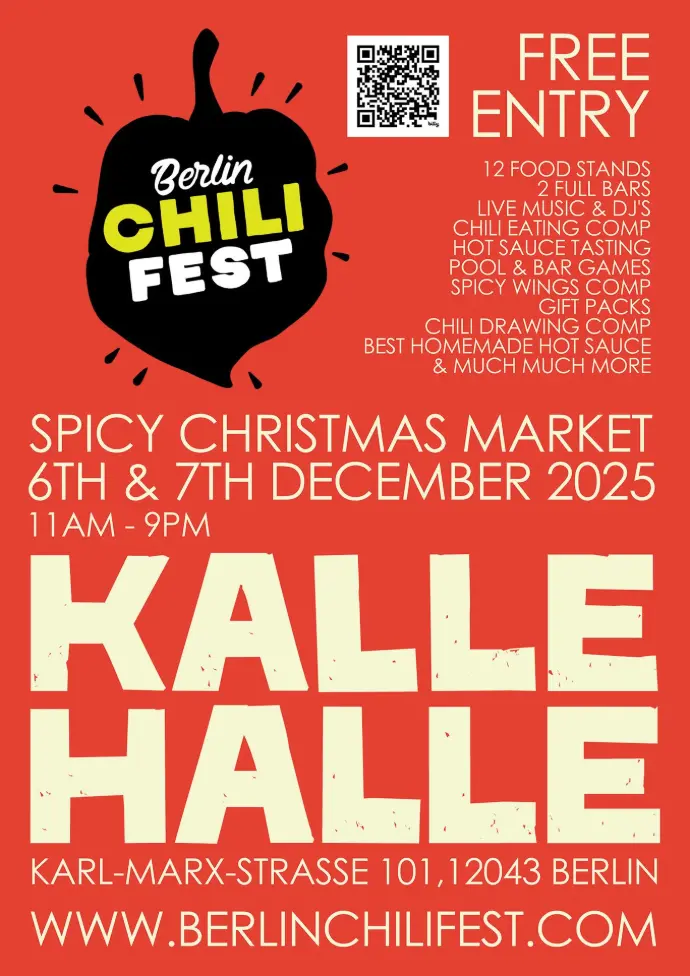 Visit https://www.berlinchilifest.com/event/berlin-chili-fest-spicy-christmas-market/ for the full program.